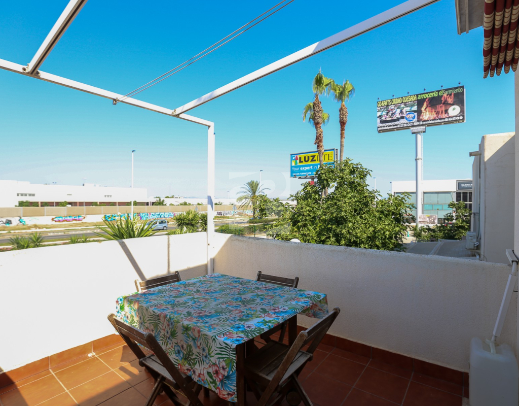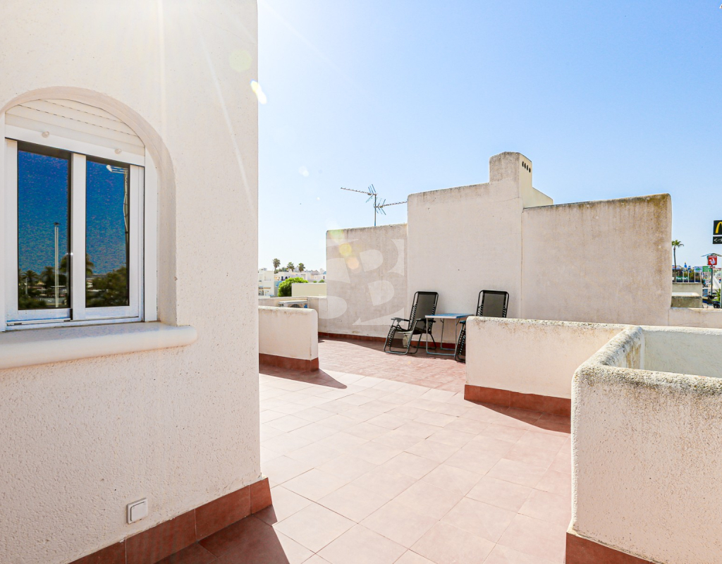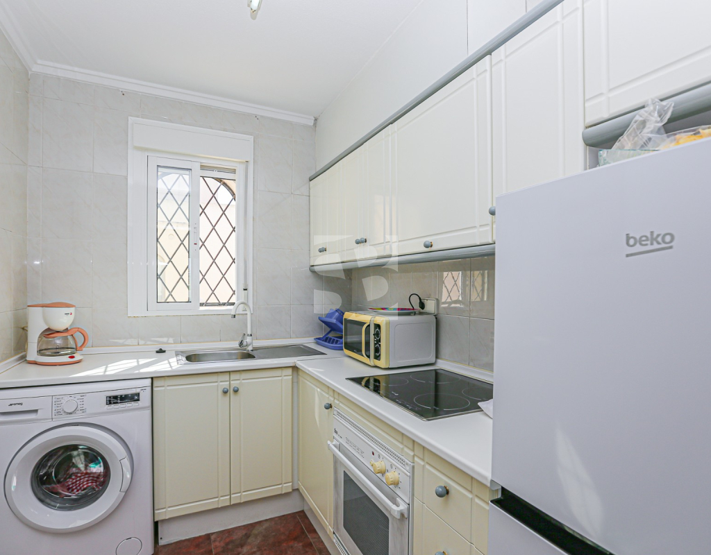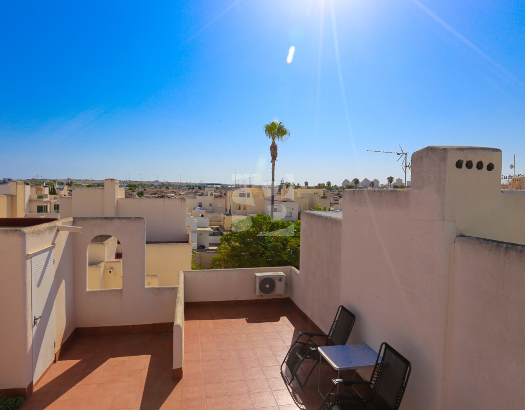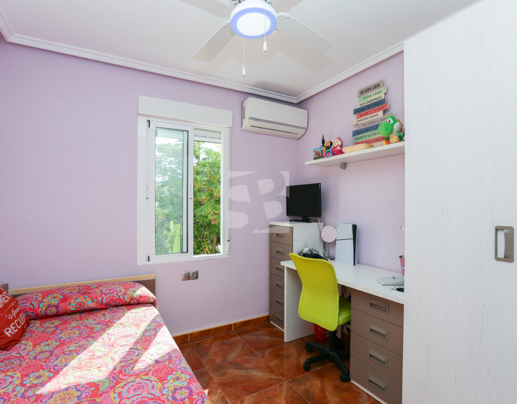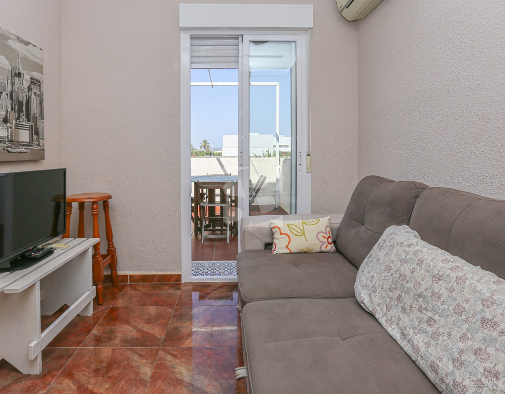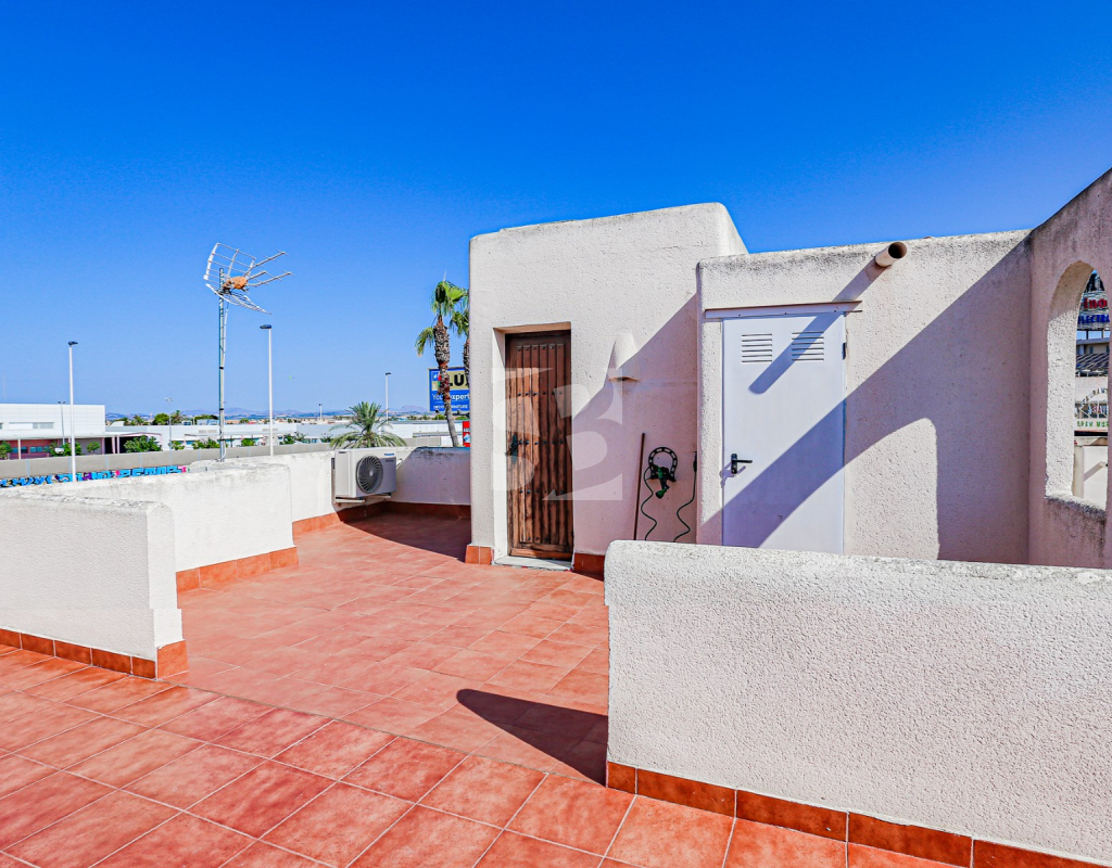 Junto a nuestra oficia ofrecemos este BUNGALOW PLANTA ALTA CON TERRAZA Y SOLÁRIUM situada en un residencial cerrado con excelentes zonas comunes, que incluyen una pista de tenis y una preciosa piscina comunitaria completamente renovada, con nuevos azulejos, vestuarios, duchas y baños. El acceso es a través de una escalera exterior que conduce a una vivienda cómoda y luminosa. Nada más entrar, encontramos un baño de invitados a mano derecha, seguido de un espacioso salón-comedor muy luminoso, ideal para disfrutar en familia. Desde el salón se accede a una terraza de 4 m² con toldo, perfecta para desayunos o cenas al aire libre. La vivienda cuenta con una cocina independiente totalmente equipada, y dispone de dos amplios dormitorios, uno de ellos con balcón francés. Además, se incluye un baño completo con ducha y un práctico trastero/despensa en la misma planta, ideal para almacenaje adicional. Entre las mejoras recientes destacan: ventanas nuevas, dos unidades de aire acondicionado, puertas interiores renovadas y otras actualizaciones que aportan confort y estilo. Como valor añadido, la propiedad cuenta con un solárium privado de 19 m², ideal para tomar el sol o relajarse, donde también se encuentra un trastero amplio independiente, perfecto para guardar mobiliario de terraza, bicicletas u otros enseres. Ubicada a escasa distancia del centro de Torrevieja, con supermercado, restaurantes, cine y servicios a pocos pasos, esta vivienda es ideal tanto como residencia habitual como para vacaciones.