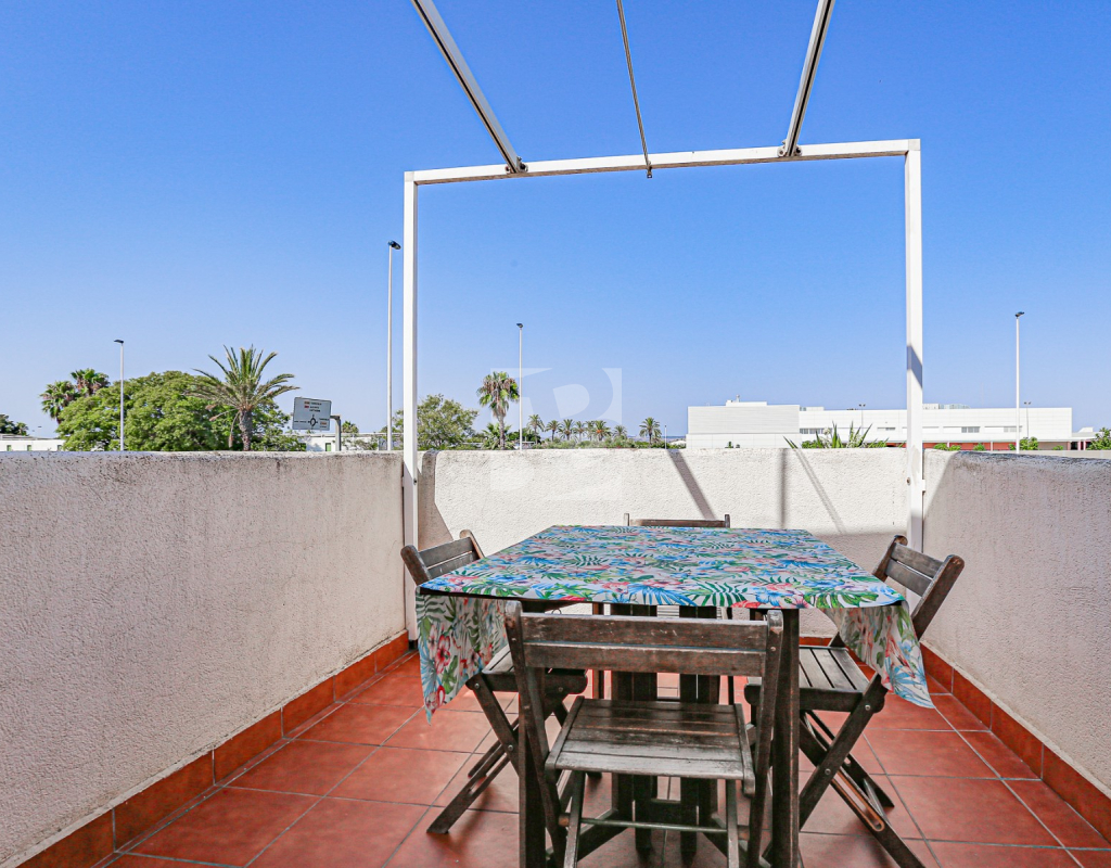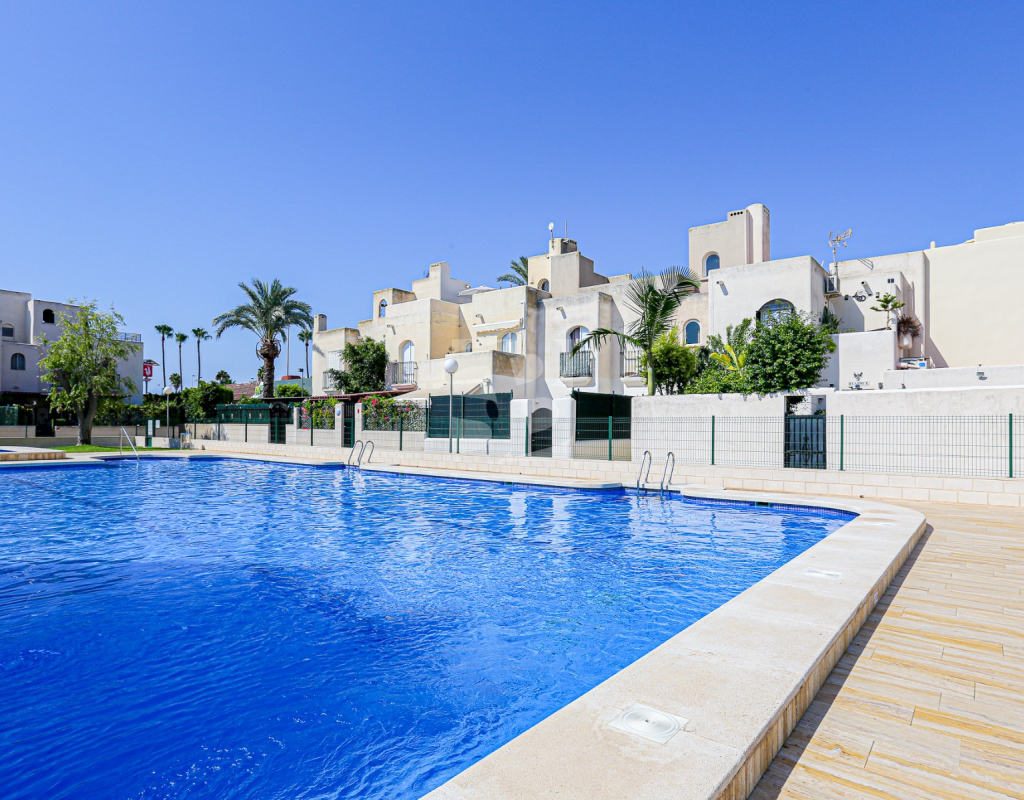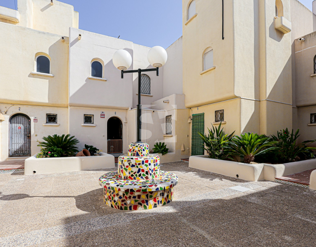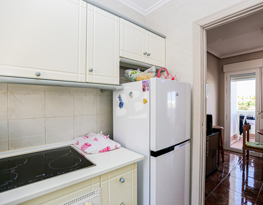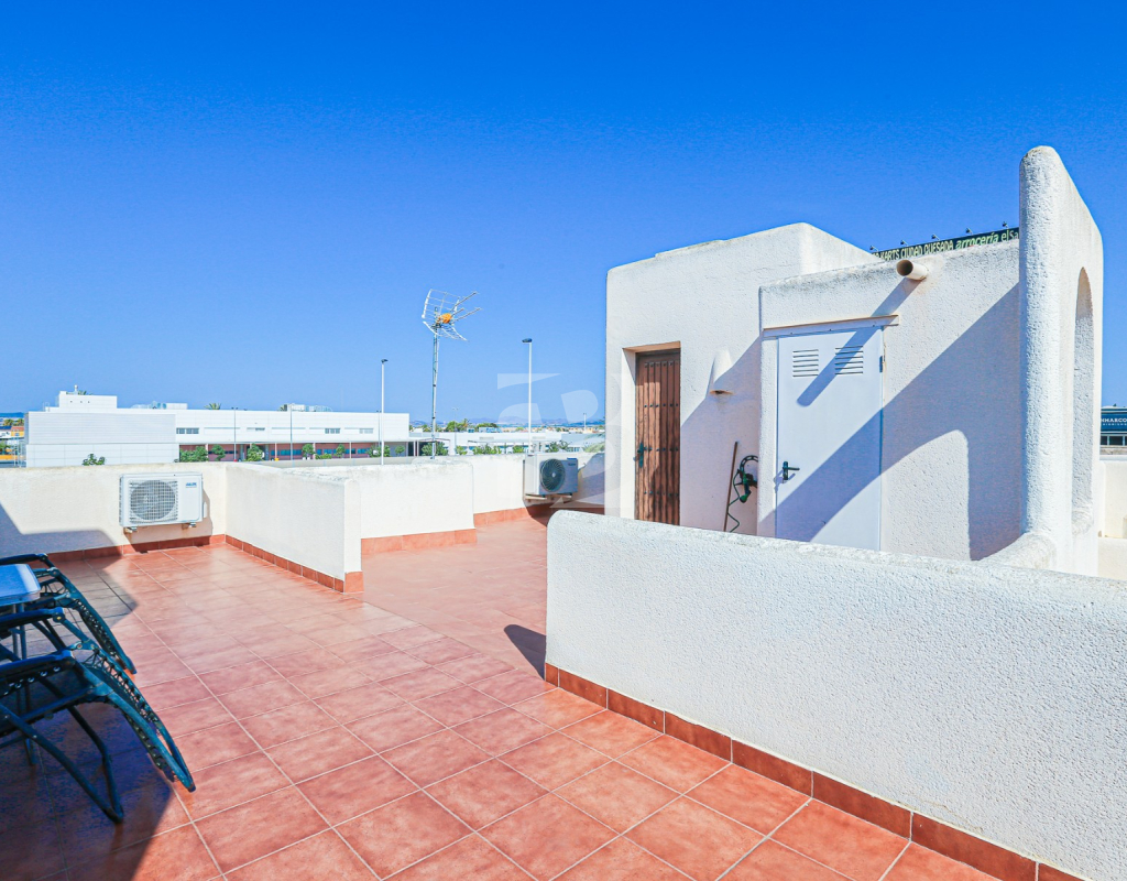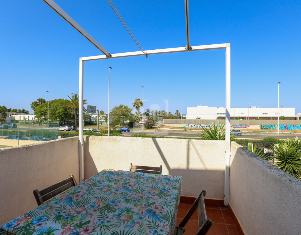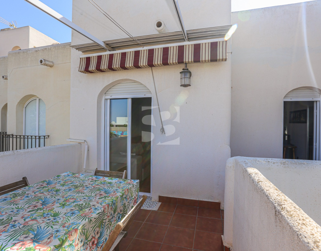 Junto a nuestra oficia ofrecemos este BUNGALOW PLANTA ALTA CON TERRAZA Y SOLÁRIUM situada en un residencial cerrado con excelentes zonas comunes, que incluyen una pista de tenis y una preciosa piscina comunitaria completamente renovada, con nuevos azulejos, vestuarios, duchas y baños. El acceso es a través de una escalera exterior que conduce a una vivienda cómoda y luminosa. Nada más entrar, encontramos un baño de invitados a mano derecha, seguido de un espacioso salón-comedor muy luminoso, ideal para disfrutar en familia. Desde el salón se accede a una terraza de 4 m² con toldo, perfecta para desayunos o cenas al aire libre. La vivienda cuenta con una cocina independiente totalmente equipada, y dispone de dos amplios dormitorios, uno de ellos con balcón francés. Además, se incluye un baño completo con ducha y un práctico trastero/despensa en la misma planta, ideal para almacenaje adicional. Entre las mejoras recientes destacan: ventanas nuevas, dos unidades de aire acondicionado, puertas interiores renovadas y otras actualizaciones que aportan confort y estilo. Como valor añadido, la propiedad cuenta con un solárium privado de 19 m², ideal para tomar el sol o relajarse, donde también se encuentra un trastero amplio independiente, perfecto para guardar mobiliario de terraza, bicicletas u otros enseres. Ubicada a escasa distancia del centro de Torrevieja, con supermercado, restaurantes, cine y servicios a pocos pasos, esta vivienda es ideal tanto como residencia habitual como para vacaciones.