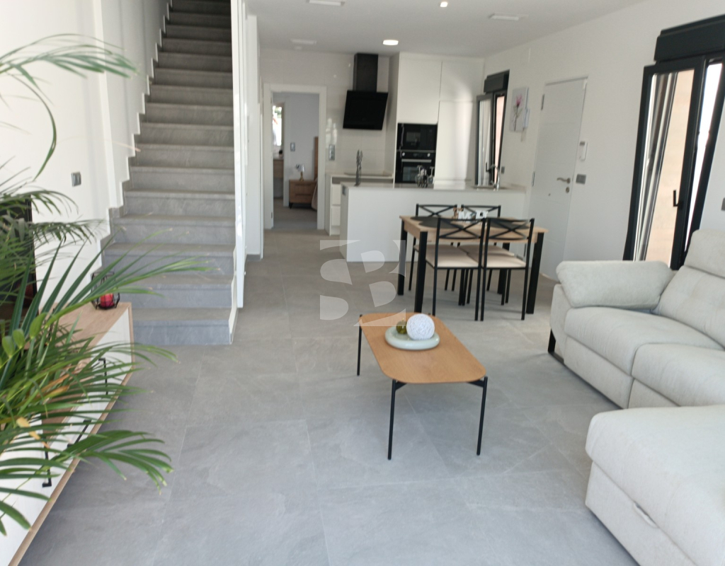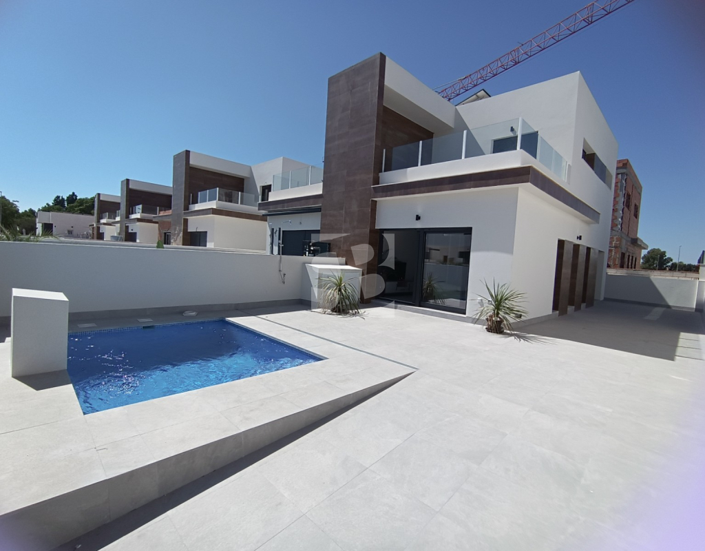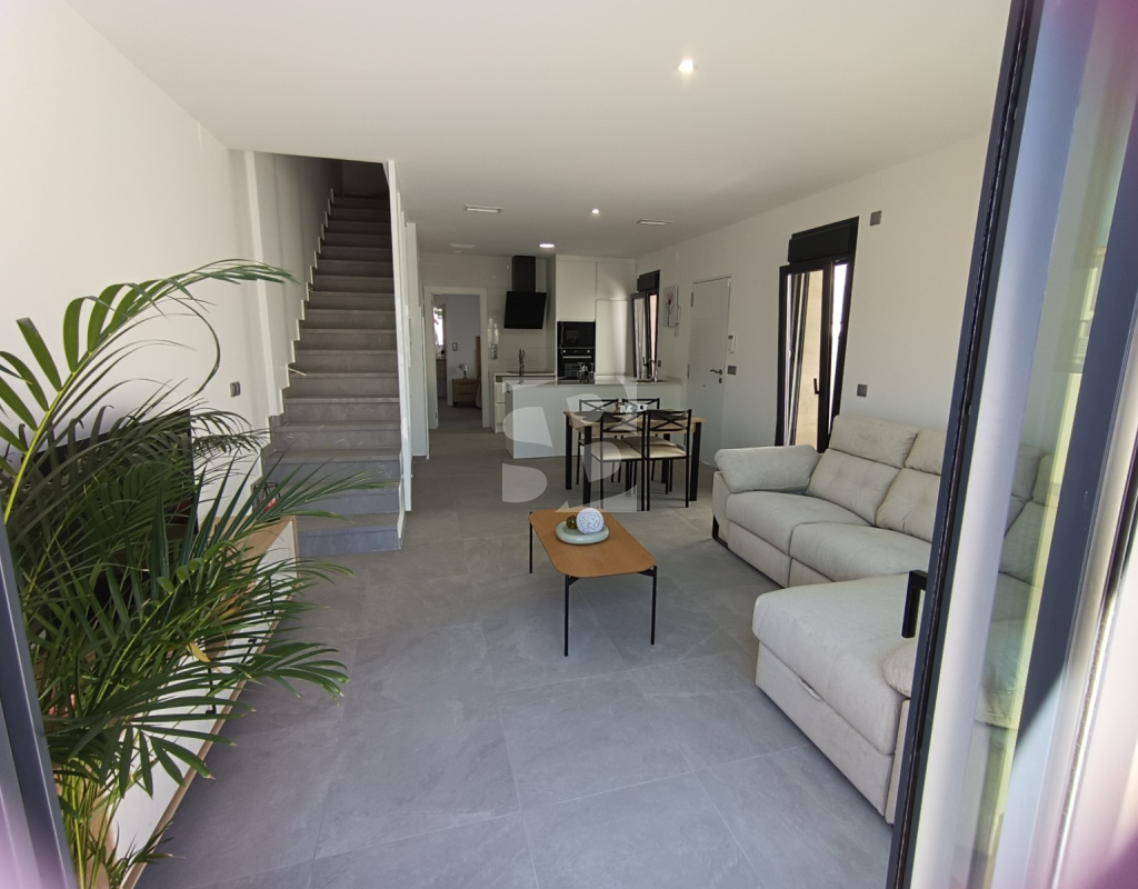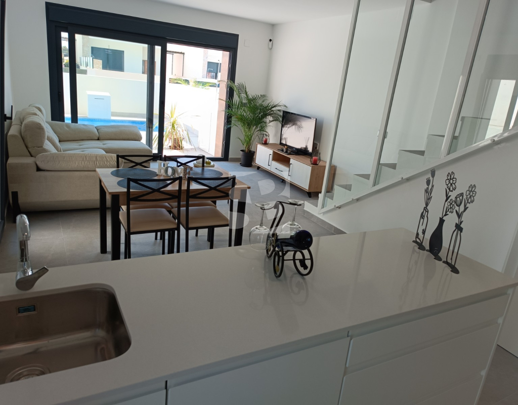 Os presentamos este oportunidad de adquirir una Obra Nueva por un buen precio en la zona tranquila de Daya Nueva. Un complejo de 20 viviendas adosadas con 3 dormitorios, 2 baños y un aseo, parking y piscina privado y terrazas soleadas. La planta baja tiene el salón comedor, cocina de estilo americana, lavandería debajo de la escalera, aseo para invitados y un dormitorio grande con su propio baño y armario empotrado.