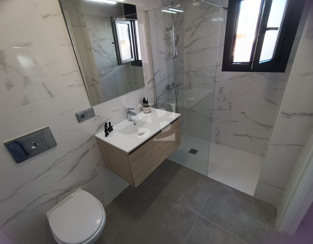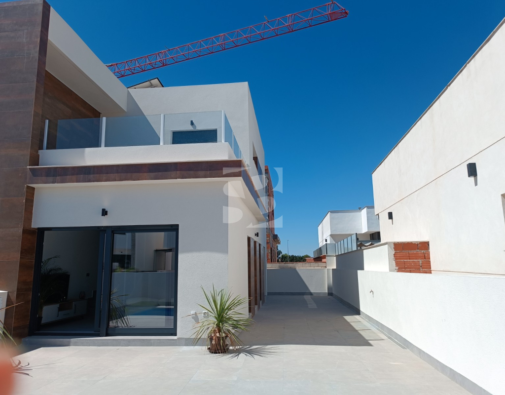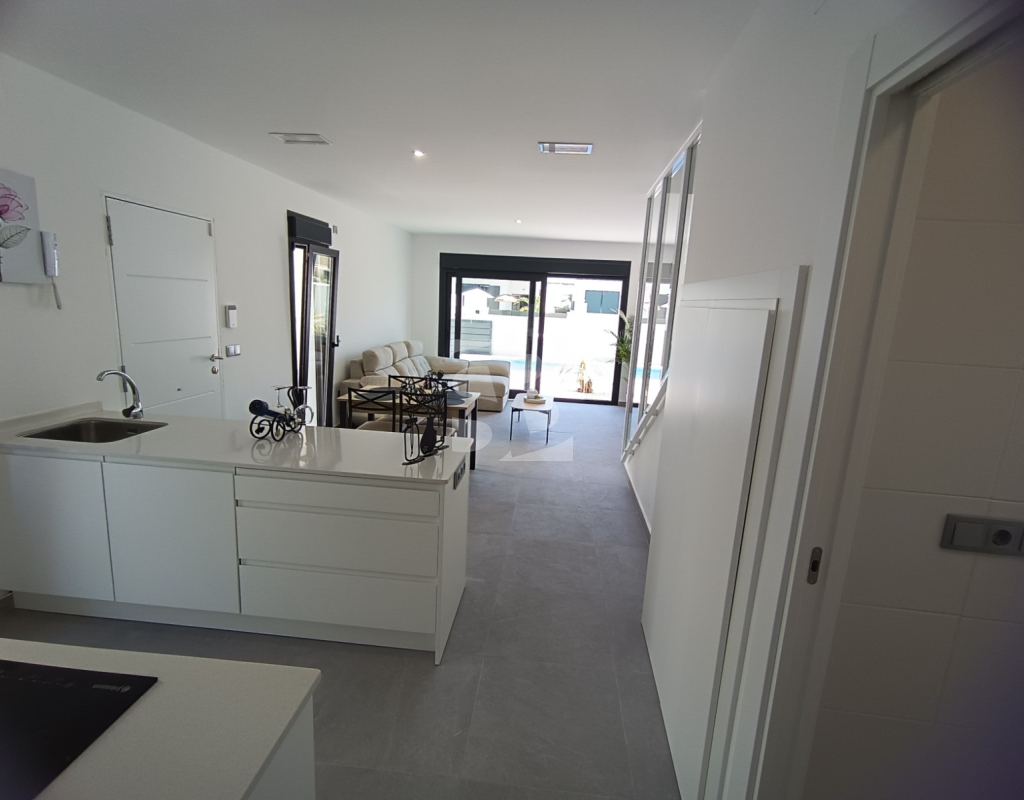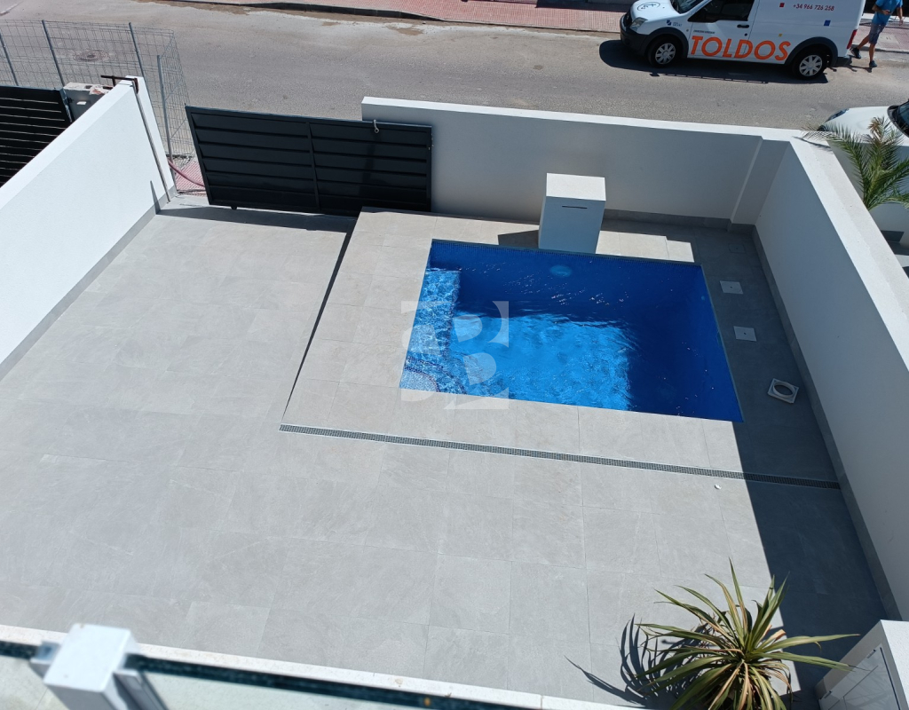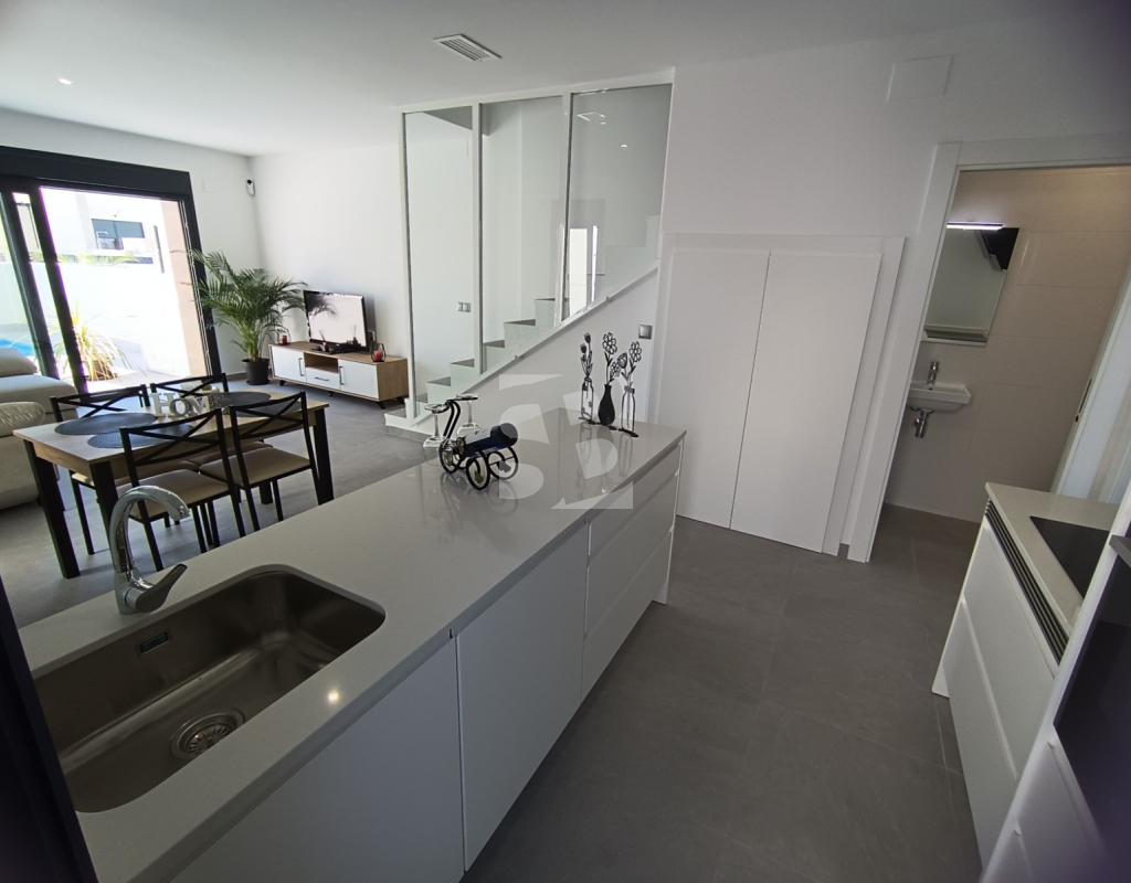 Os presentamos este oportunidad de adquirir una Obra Nueva por un buen precio en la zona tranquila de Daya Nueva. Un complejo de 20 viviendas adosadas con 3 dormitorios, 2 baños y un aseo, parking y piscina privado y terrazas soleadas. La planta baja tiene el salón comedor, cocina de estilo americana, lavandería debajo de la escalera, aseo para invitados y un dormitorio grande con su propio baño y armario empotrado.