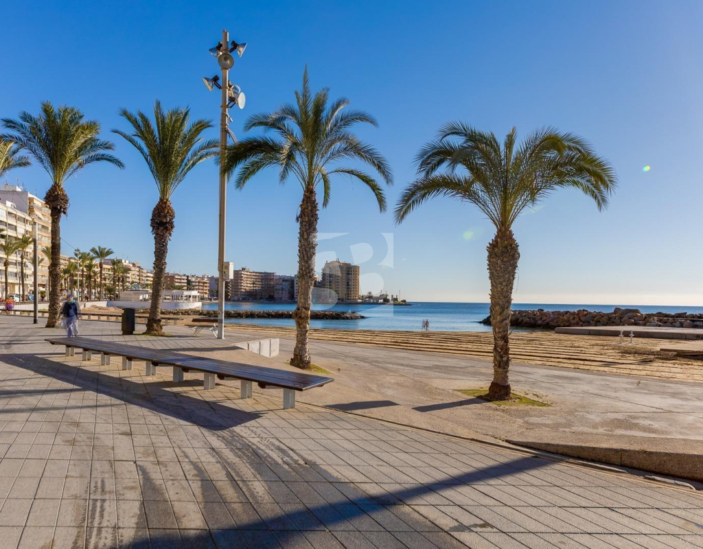La vivienda cuenta con 3 amplios dormitorios, 2 baños modernos, un luminoso salón-comedor con cocina abierta totalmente equipada con electrodomésticos nuevos. Además, dispone de vistas laterales al mar y se encuentra en una de las zonas más demandadas de Torrevieja, a solo unos pasos de la popular Playa del Cura.