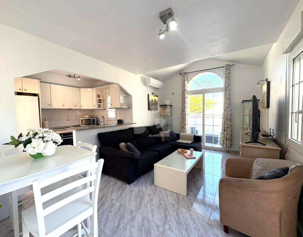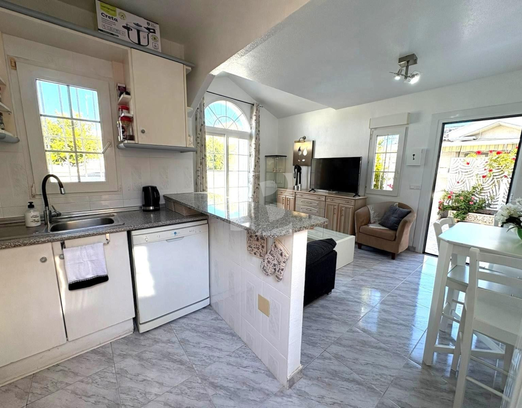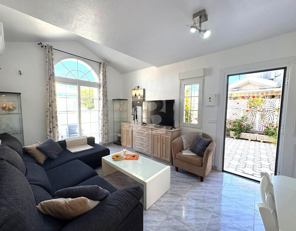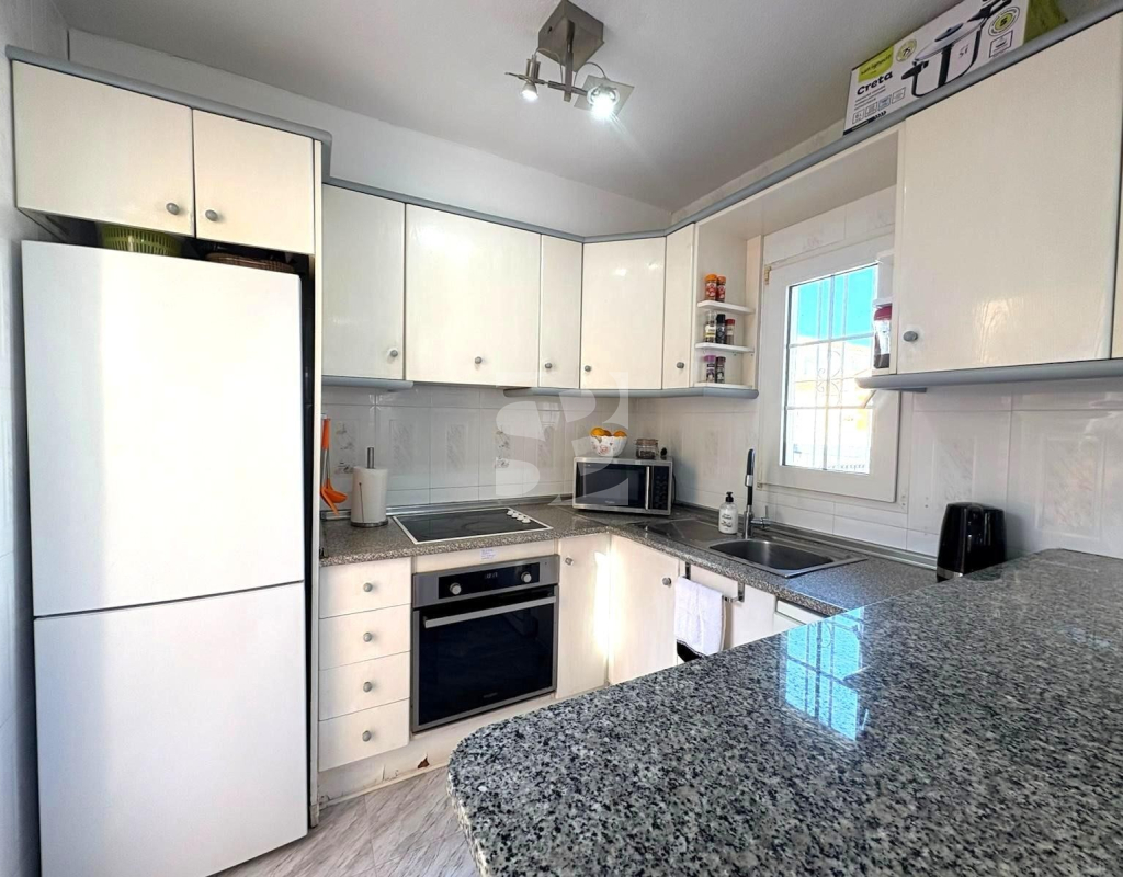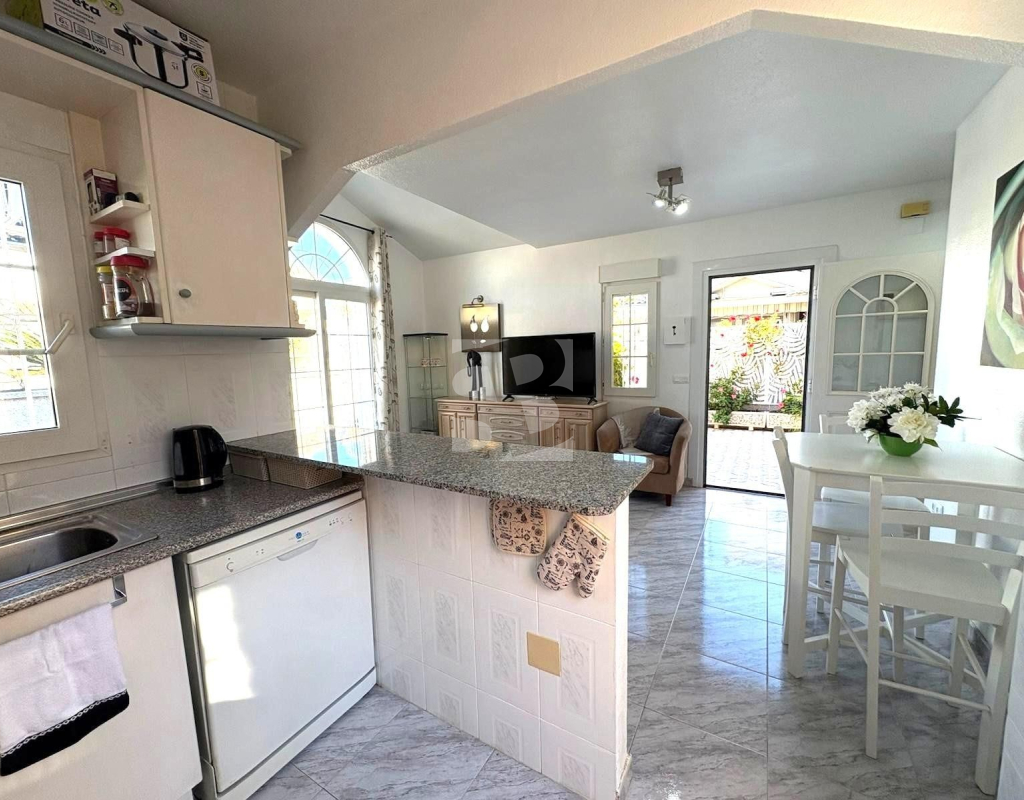 La casa toda exterior dispone de dos dormitorios con armarios empotrados, un baño, cocina americana con acceso a patio y precioso salón con vistas al JARDÍN en esquina con pérgola y trastero. Por la parte del patio se accede a un solárium con sol durante todo el día, perfecto para relajarse.