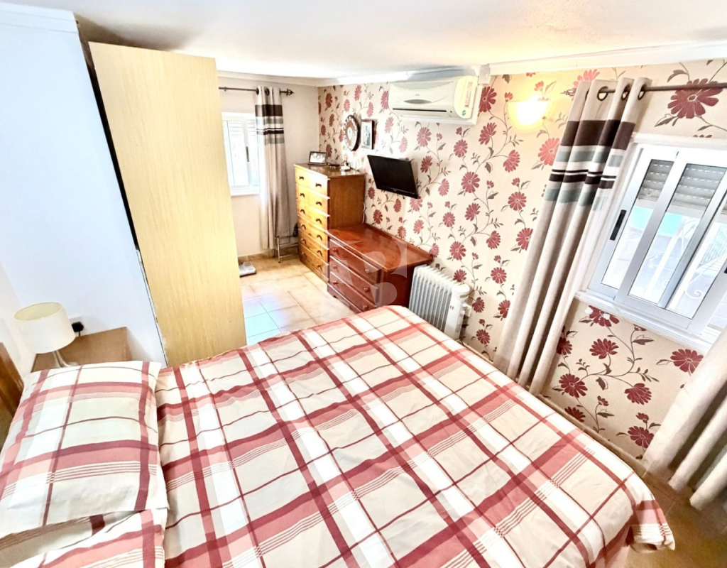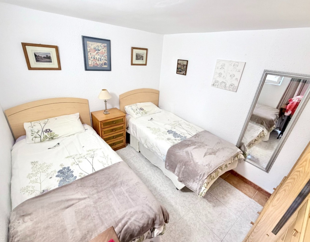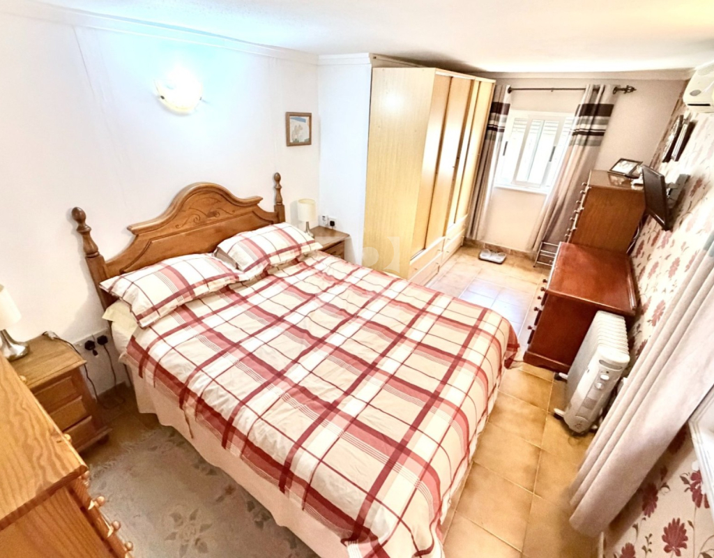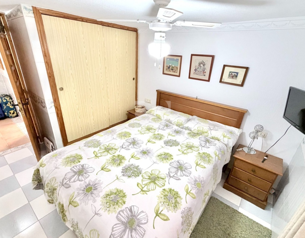 El dormitorio principal es una acogedora habitación doble con armarios empotrados. Un segundo dormitorio ofrece un espacio amplio, con aire acondicionado y armarios independientes, ideal para invitados o familiares.