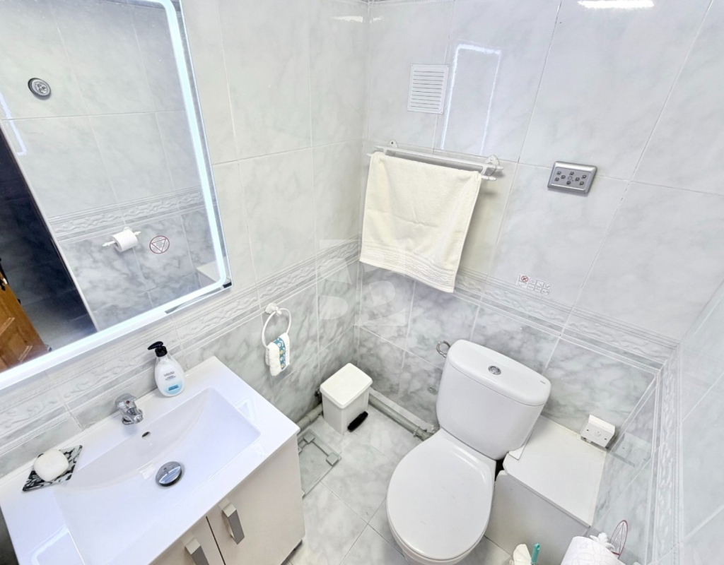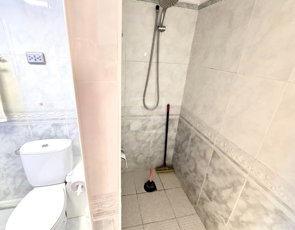 Una característica destacada de esta propiedad es el semisótano donde se encuentran los dormitorios y un baño equipado con ducha de pared a pared, inodoro y mueble de lavabo.