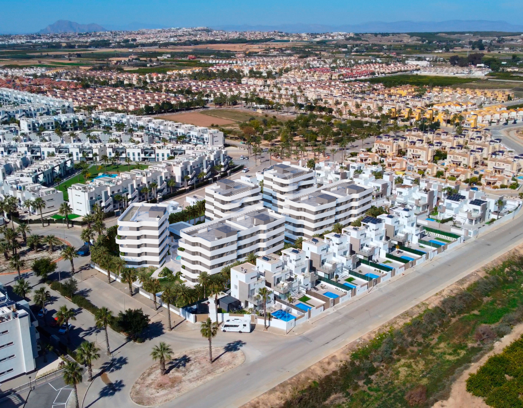 Tenemos el placer de presentar estos apartamentos de nueva construcción ubicados en la popular zona de El Raso de Guardamar del Segura. A solo 3 km del mar y las playas de arena de Guardamar del Segura, este complejo ofrece un estilo de vida lujoso con estructuras modernizadas, piscina comunitaria, spa, oficinas comunitarias y tranquilidad.