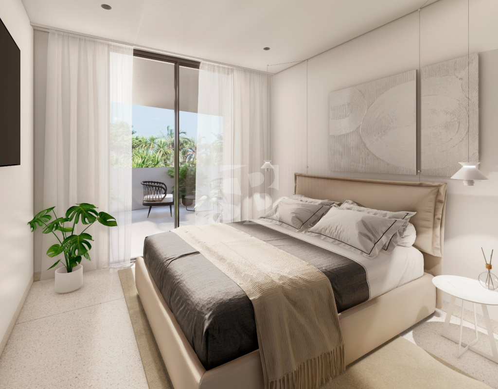 Cada apartamento cuenta con 2 dormitorios, 2 baños (uno en suite), cocina americana, salón-comedor y una amplia terraza con vistas a la zona comunitaria. También incluyen su propia plaza de aparcamiento subterráneo.