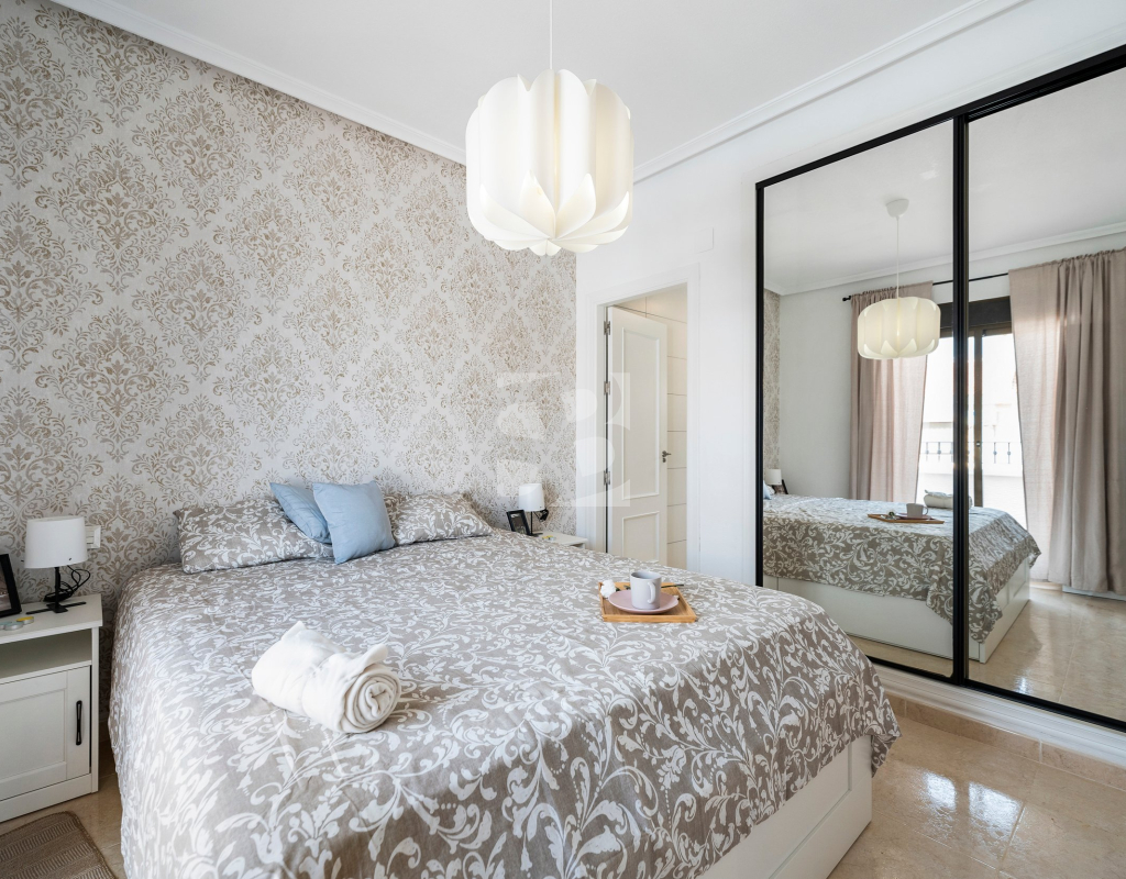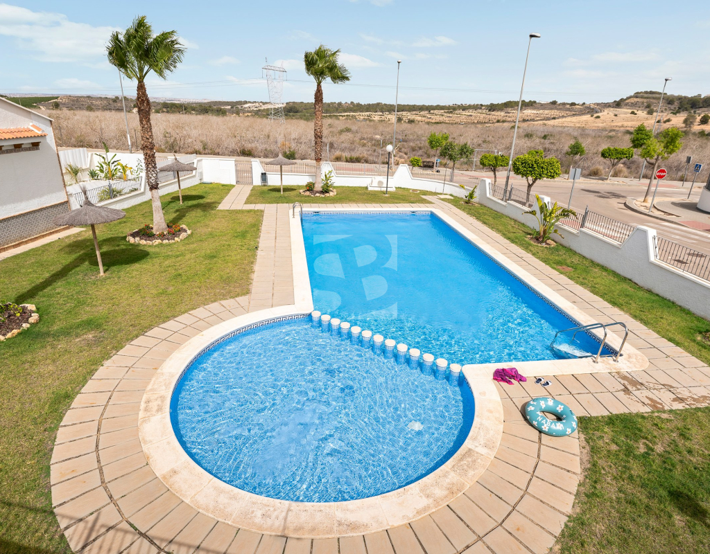Casa adosada reformada en venta en Mirador de San Miguel, Costa Blanca Sur Descubre este precioso adosado de dos plantas, completamente reformado, situado en la tranquila y demandada urbanización Mirador de San Miguel, a pocos minutos en coche de Torrevieja y de las playas del Mediterráneo. Esta encantadora vivienda combina a la perfección el estilo mediterráneo con el confort moderno. Con 3 amplios dormitorios y 3 baños (dos de ellos en suite), ofrece privacidad y funcionalidad, ideal tanto como residencia permanente como casa de vacaciones en la Costa Blanca Sur. En la planta baja encontrarás un luminoso salón-comedor, una cocina totalmente equipada, un dormitorio con acceso directo al porche trasero, un baño completo y una práctica zona de lavandería.En la planta superior, se encuentran dos dormitorios adicionales, cada uno con su baño en suite, y acceso a una amplia terraza, perfecta para tomar el sol o disfrutar de una copa al atardecer. En el exterior, la vivienda cuenta con un jardín delantero de 82 m², plaza de aparcamiento subterráneo y trastero. Además, la urbanización ofrece una gran piscina comunitaria, ideal para relajarse y disfrutar del sol. Ubicada a tan solo 15 minutos de la playa y a 5 minutos de tiendas, bares y restaurantes, esta propiedad ofrece una combinación perfecta de tranquilidad y comodidad. Además, está cerca de varios campos de golf reconocidos, lo que la convierte en una excelente opción para los amantes del golf y para quienes buscan disfrutar del estilo de vida mediterráneo. Características destacadas Vivienda completamente reformada y amueblada 3 dormitorios y 3 baños (2 en suite) Terraza y jardín privado soleado Piscina comunitaria Aparcamiento subterráneo y trastero Urbanización tranquila cerca del centro de San Miguel de Salinas A solo 15 minutos de las playas de Torrevieja y Orihuela Costa No pierdas la oportunidad de comprar este adosado reformado en Costa Blanca Sur, listo para entrar a vivir y disfrutar de la vida al sol.