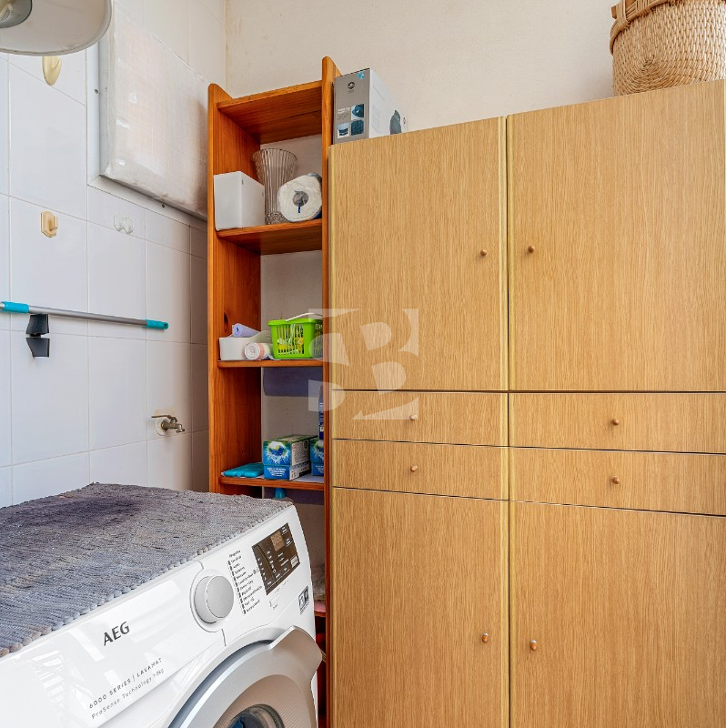 Se accede al bungalow a través de una terraza con un precioso jardín de invierno. Gracias a su ubicación al sur, esta terraza es el lugar perfecto para disfrutar de los meses de invierno cuando no hace tanto calor afuera. Desde la escalera exterior se accede a la gran terraza privada en la azotea. Aquí también hay un trastero.