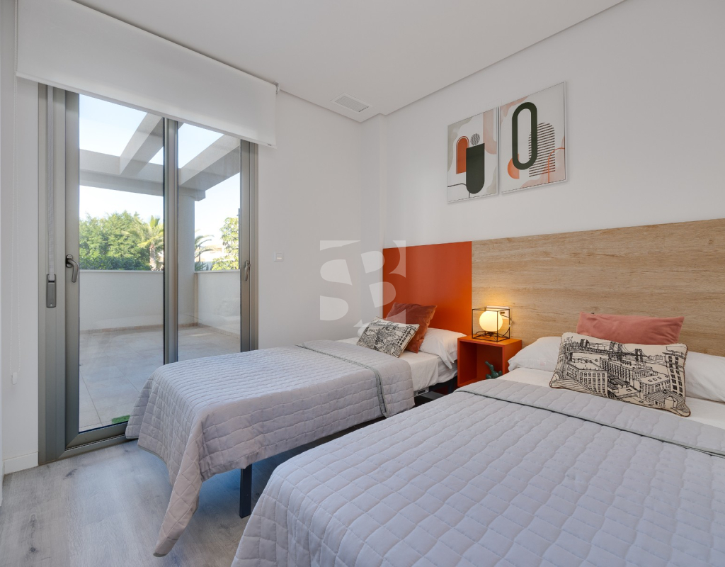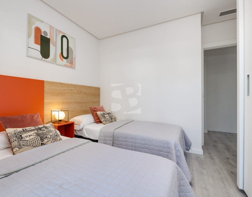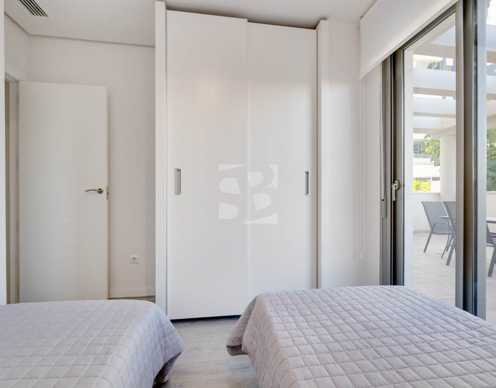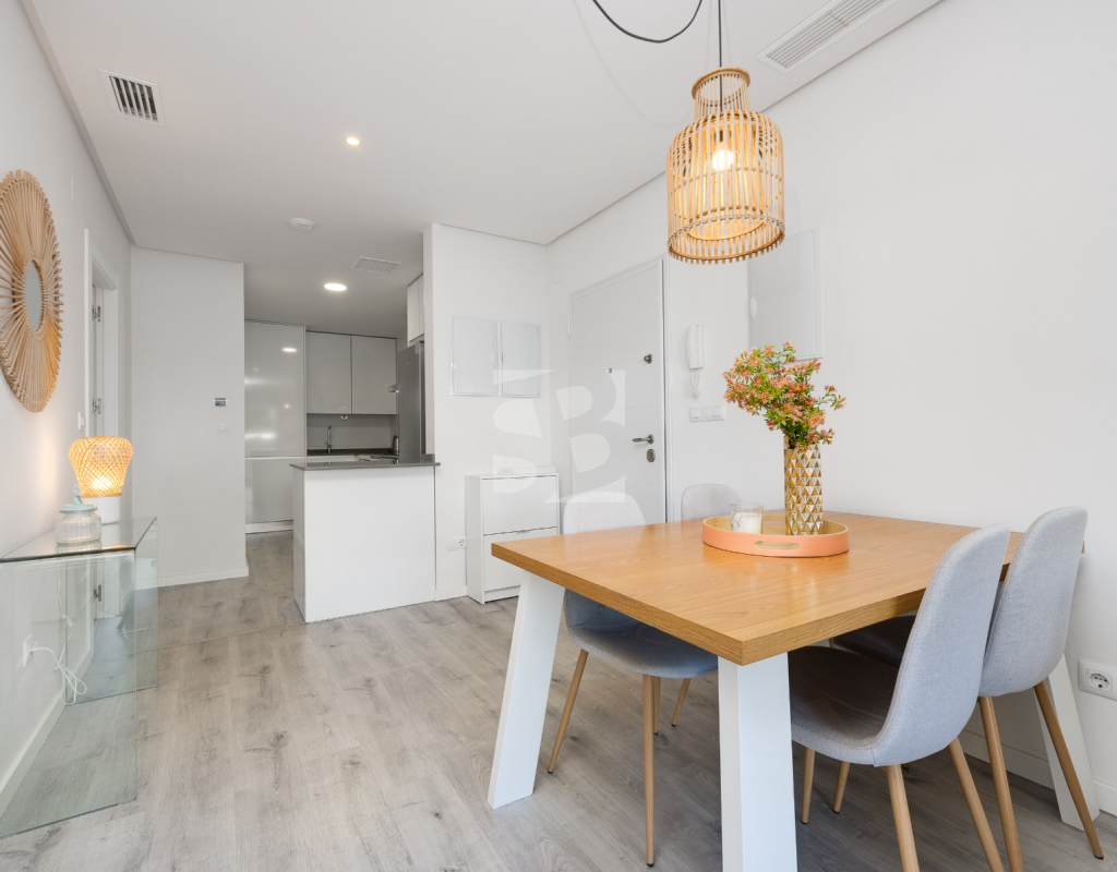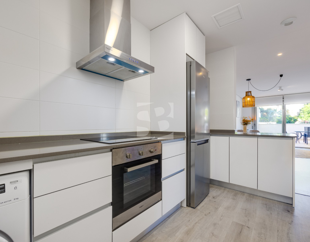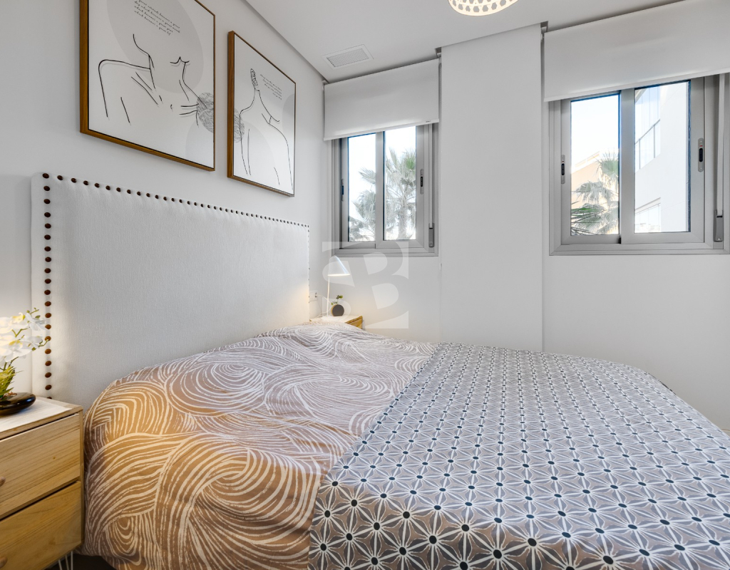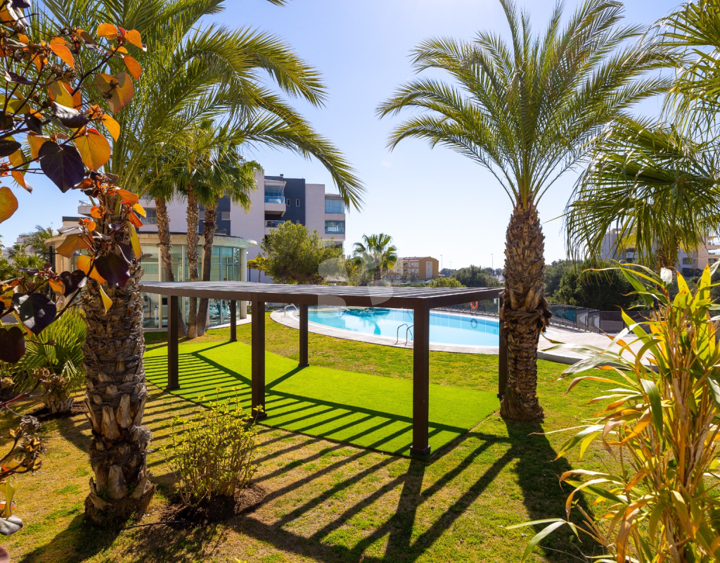 Ubicado en una urbanización de alto nivel, con excelentes zonas comunes con Piscina comunitaria, Piscina termal perfecta para su uso todos los días del año, Gimnasio y preciosas zonas verdes. Una vivienda donde cumplir sus sueños de vivir en nuestra costa con una alta clalidad de vida, sin escaleras, con una decoración práctica y funcional, cerca del campo de golf, a 2,5 km del mar, a 1km de C.COMERCIAL ZENIA BOULEVARD, restaurantes, colegios... no deje escapar esta bonita vivienda lista para entrar a vivir. Perfecta tanto como residencia habitual, segunda vivienda o inversión para alquiler vacacional.