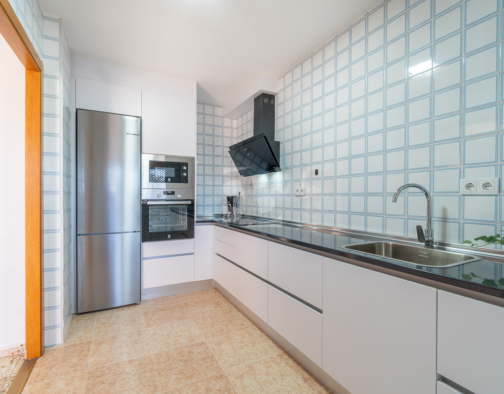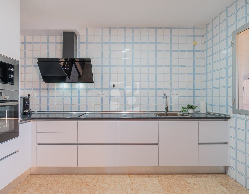 La cocina, recién renovada y completamente equipada, está lista para inspirar tus aventuras culinarias y cuenta con un lavadero independiente cerrado junto a la misma para poder utilizar la lavadora sin molestar al resto de la vivienda y todo ello abriendo a un gran salón-comedor junto a la amplia y luminosa terraza acristalada principal anteriormente mencionada. Las ventanas de PVC blanco con doble cristal climalit añaden confort y aislamiento tanto térmico como acústico para mayor tranquilidad y disfrutar de la vivienda durante todo el año.