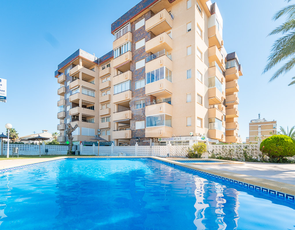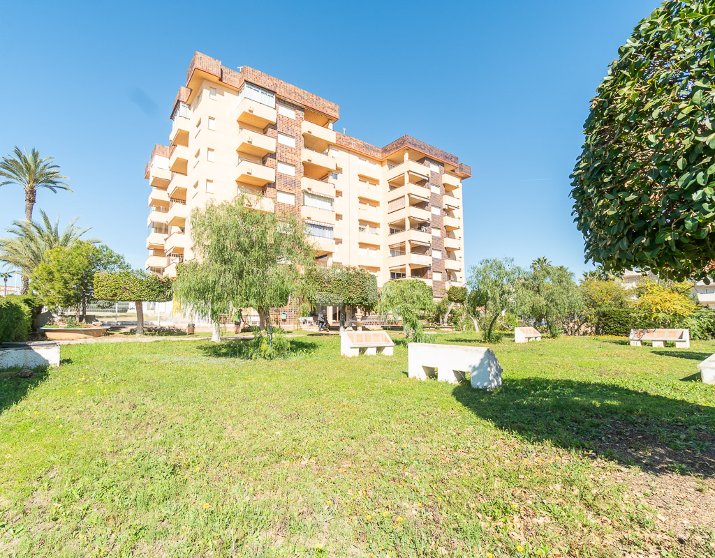 La vivienda se encuentra en un bloque de apartamentos con piscina y jardines comunitarios y cuenta también con parking para vehículos dentro de la zona comunitaria y de un un garaje cerrado-trastero privado en el sótano del mismo edificio, por lo que sobre todo en los meses veraniegos con más población estacional y problemas de aparcamiento, usted puede aparcar fácilmente su vehículo y tener un espacio para dejar tanto su coche como maletas, bicicletas y trastos varios de la vivienda en su garaje privado.