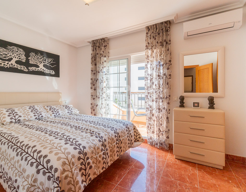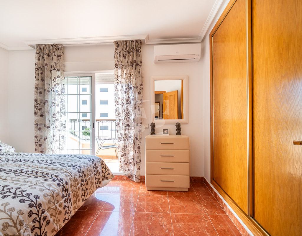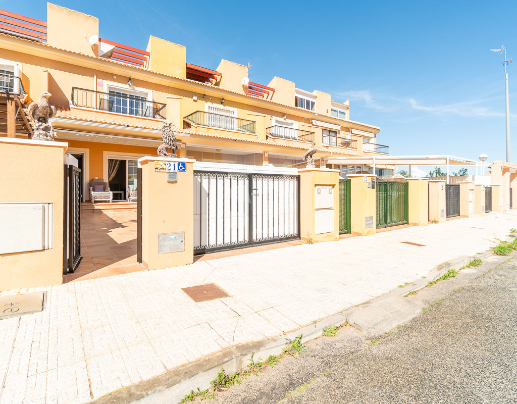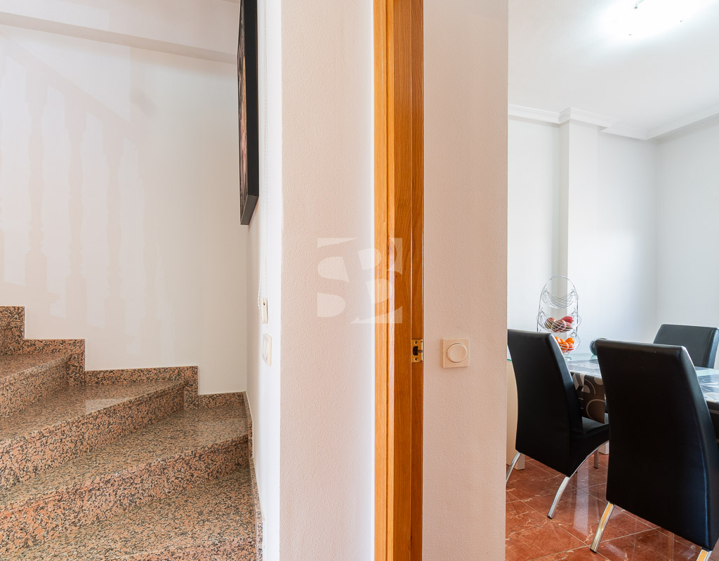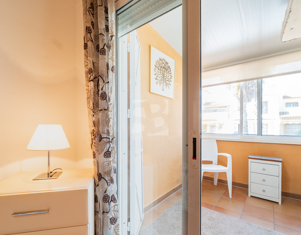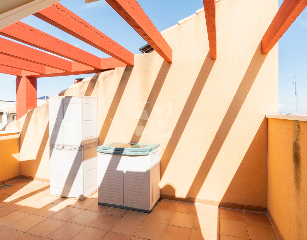 En la planta baja la casa cuenta con un salón comedor amplio y luminoso, una cocina independiente totalmente equipada con acceso a la terraza trasera con orientación oeste, un primer dormitorio y un baño completo con ducha.Subiendo por las escaleras se llega al primer piso que incluye 2 dormitorios adicionales, cada uno con su terraza privada, y otro baño completo con bañera. En la segunda y última planta se encuentra el solarium de unos 15 m² dónde se puede disfrutar del sol durante todo el día. Disfruta de tu propio oasis de tranquilidad con una espaciosa terraza de 30 m², ideal para relajarte o recibir visitas, y un solárium para aprovechar al máximo las vistas y el buen clima. Además, la orientación este garantiza una excelente luminosidad durante todo el día. Entre los elementos que hacen destacar esta vivienda se encuentran el aire acondicionado, los armarios empotrados, un práctico lavadero y una terraza cerrada en la primera planta que amplía el espacio útil del hogar, aportando mayor comodidad. También cuenta con una amplia y atractiva piscina comunitaria, ideal para disfrutar en los días de calor y aprovechar al máximo los momentos de ocio.