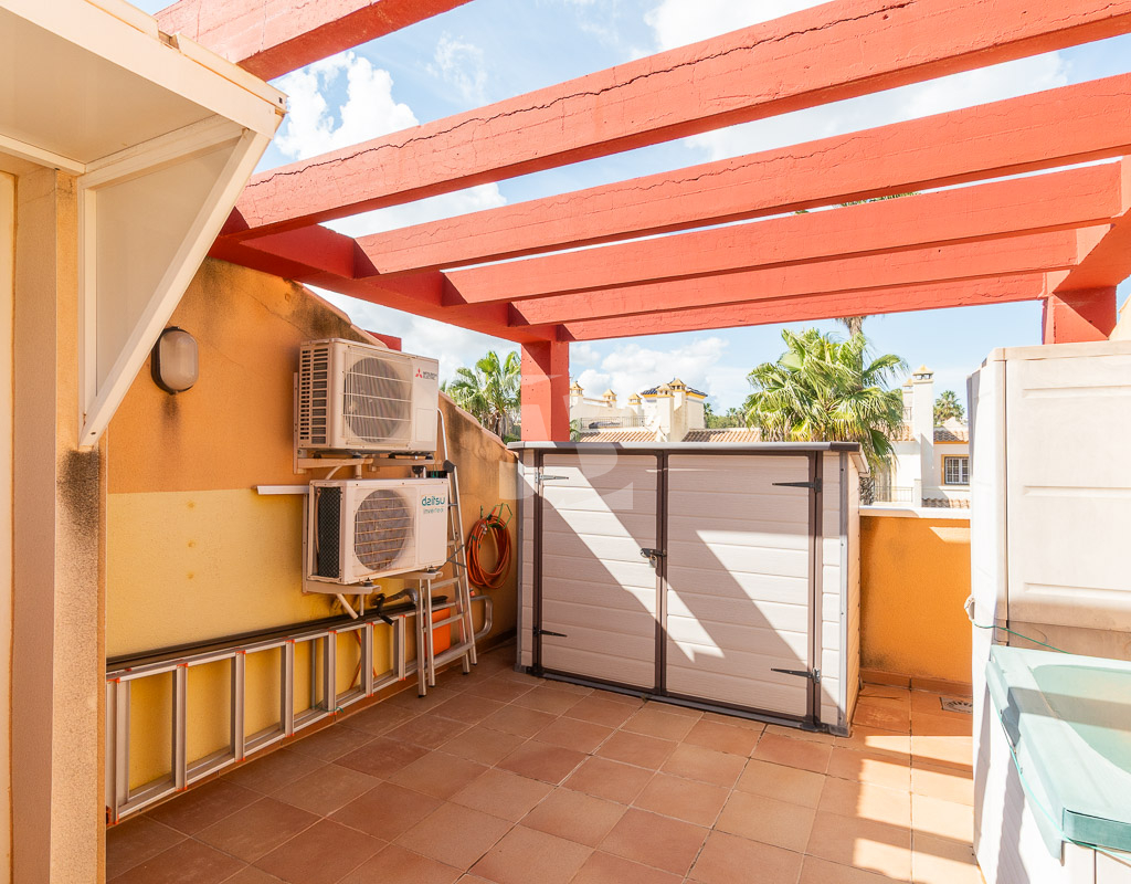 Presentamos este fantástico adosado de 3 dormitorios en la exclusiva zona de Villamartín, un lugar ideal para disfrutar del sol y la tranquilidad de la Costa Blanca. Con una superficie de 104 m² construidos y una parcela de 130 m², esta propiedad ofrece todo lo que necesitas para vivir cómodamente y cerca de todo lo que te importa.
