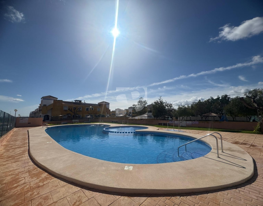 La vivienda dispone de dos dormitorios, un baño, cocina con patio y salón con acceso a porche. El jardín es perfecto para tomar el sol y además cuanta con piscina comunitaria con preciosas zonas verdes.
