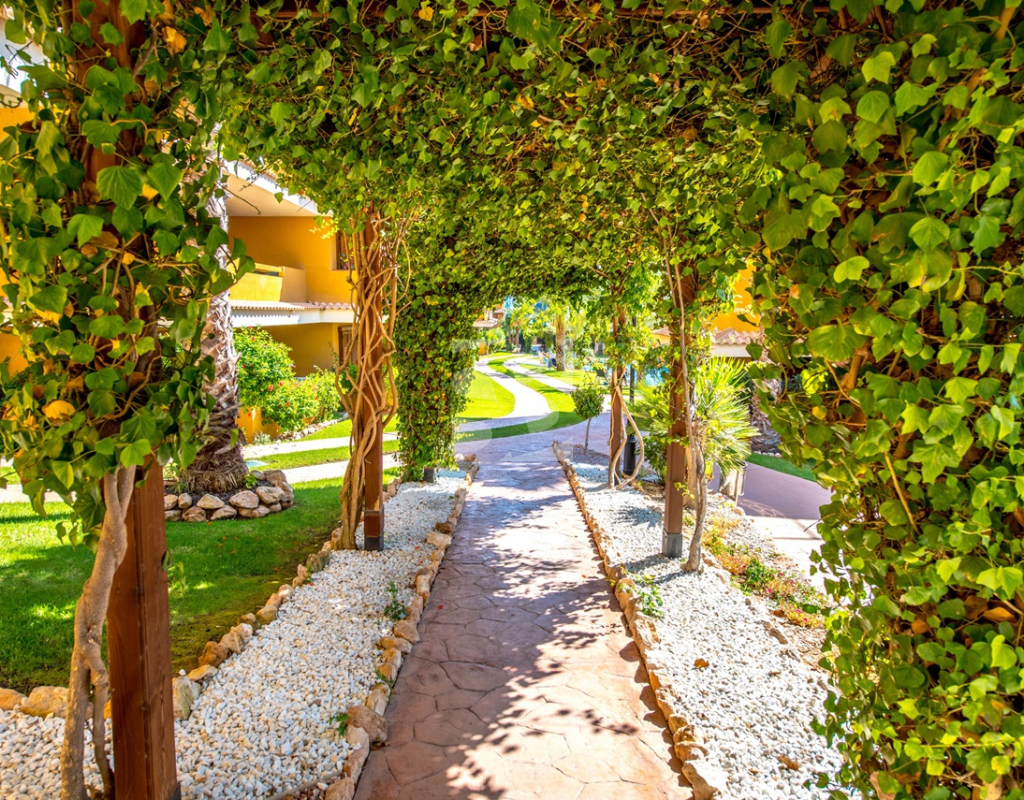 Ubicado en un complejo de lujo con vigilancia 24h, el residencial ofrece jardines de césped natural y tres piscinas, destacando una piscina climatizada operativa todo el año.