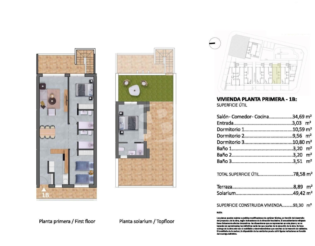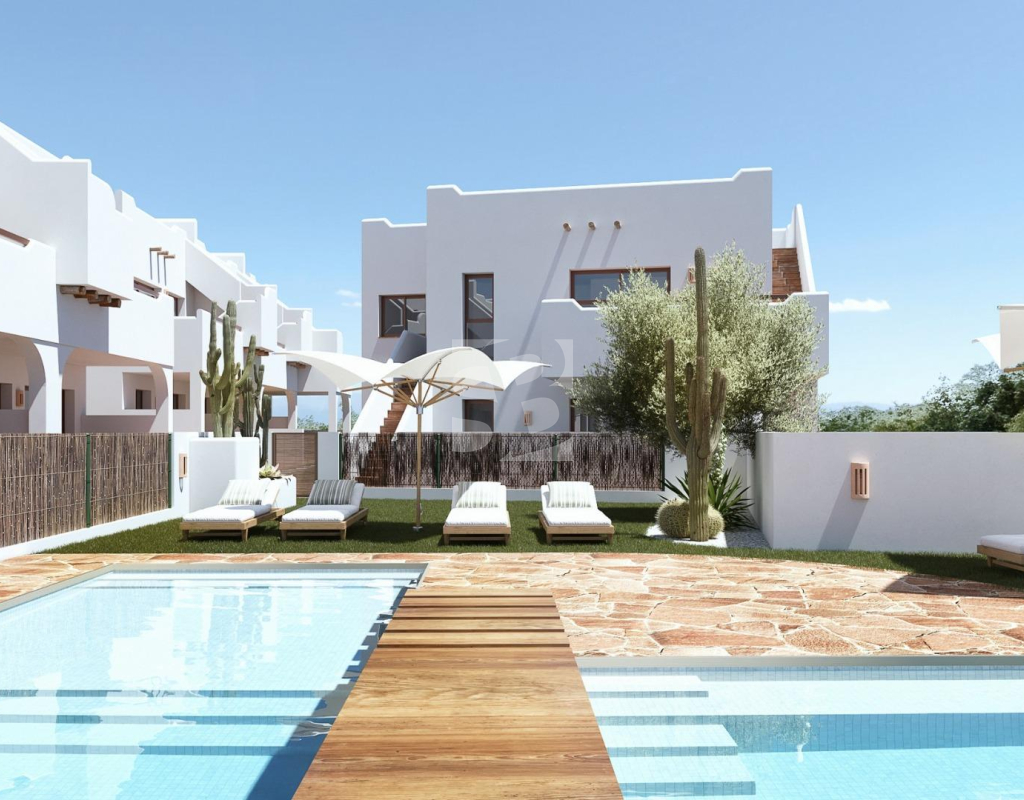 Эксклюзивные бунгало в Пилар-де-ла-Орадада - привилегированное местоположение Уникальный жилой комплекс для наслаждения Средиземноморьем Добро пожаловать в этот эксклюзивный жилой комплекс из 16 бунгало и одного углового таунхауса с 2 и 3 спальнями, предназначенный для тех, кто ищет качество жизни и комфорт на побережье Коста Бланка. Расположенный всего в нескольких минутах ходьбы от центра Пилар-де-ла-Орадада, этот современный комплекс предлагает спокойную обстановку, при этом все удобства находятся в пределах легкой досягаемости. Дома спроектированы таким образом, чтобы обеспечить максимальное благополучие их владельцев: Первые этажи с палисадником и задним двориком. Верхние этажи с частной террасой и солярием с захватывающими видами. Угловой таунхаус с большим пространством и уединением. В жилом комплексе есть большой общий бассейн, окруженный зелеными зонами, идеально подходящий для отдыха под средиземноморским солнцем. Современный дизайн и высококачественная отделка Каждый дом был тщательно спроектирован, чтобы предложить свет, функциональность и современный стиль. Бронированная входная дверь для дополнительной безопасности. Кухня открытой концепции, интегрированная в гостиную для удобства. Современные ванные комнаты с душевыми поддонами и экранами из закаленного стекла. Предварительная установка кондиционеров в гостиной и спальнях. Производство горячей воды с помощью индивидуального тепловентилятора для большей энергоэффективности. Верхние этажи с предварительной установкой открытой кухни в соляриях. Кроме того, на территории комплекса есть парковка для велосипедов и частное парковочное место на каждый дом. Пилар-де-ла-Орадада - место, где можно жить круглый год Расположенный в провинции Аликанте, Пилар-де-ла-Орадада - идеальное место для тех, кто хочет совместить спокойствие, природу и первоклассные услуги. Всего в нескольких минутах езды находятся прекрасные пляжи, такие как Плайя-де-лас-Хигерикас, с золотистым песком и кристально чистыми водами Средиземного моря. Этот комплекс имеет непревзойденное расположение: в нескольких минутах ходьбы находятся супермаркеты, магазины, рестораны и развлекательные центры. В этом районе также есть пешеходные тропы, велосипедные дорожки и широкий спектр спортивных сооружений. Основные расстояния до основных достопримечательностей Пляж Торре-де-ла-Орадада - 3 км (5 минут езды). Поле для гольфа Lo Romero - 5 км (10 минут езды). Торговый центр La Zenia Boulevard - 15 км (15 минут езды). Аэропорт Корвера (Мурсия) - 40 км (40 мин езды). Аэропорт Аликанте - 55 км (55 минут езды). Забронируйте недвижимость на побережье Коста-Бланка сегодня Не упустите возможность приобрести новую недвижимость в непревзойденном месте. Свяжитесь с нами сегодня, чтобы получить дополнительную информацию и договориться о просмотре.