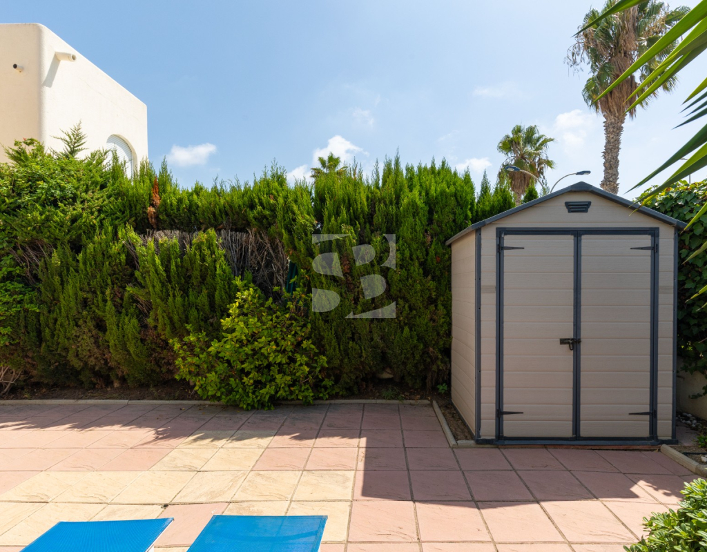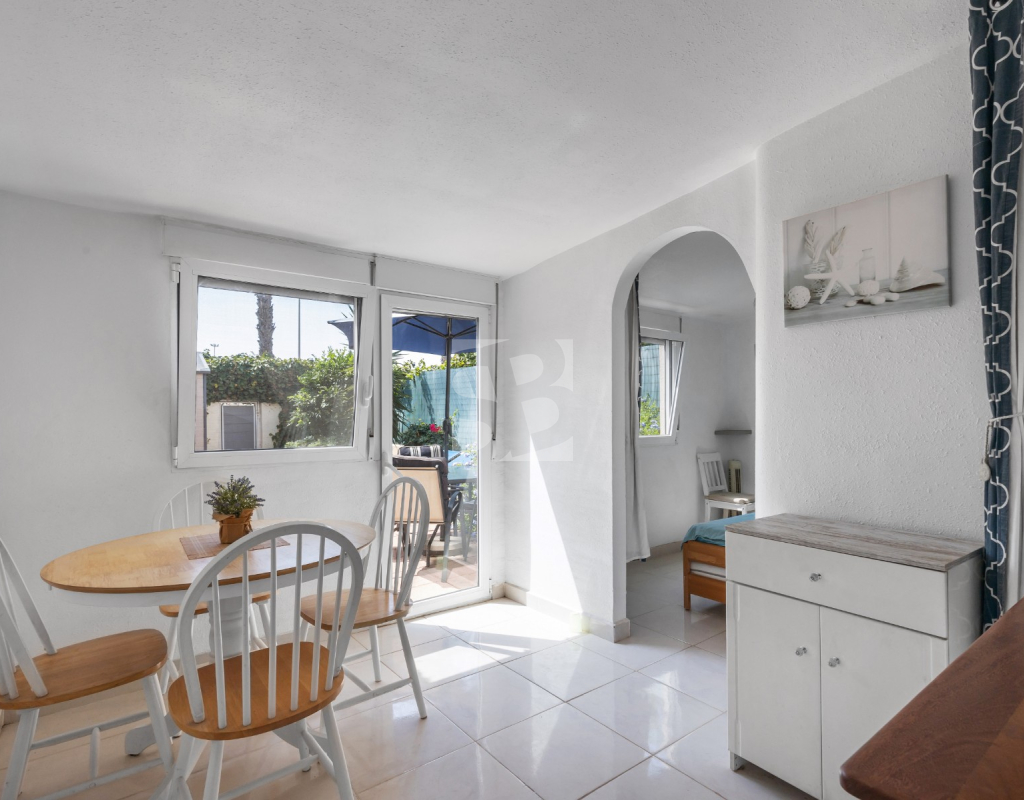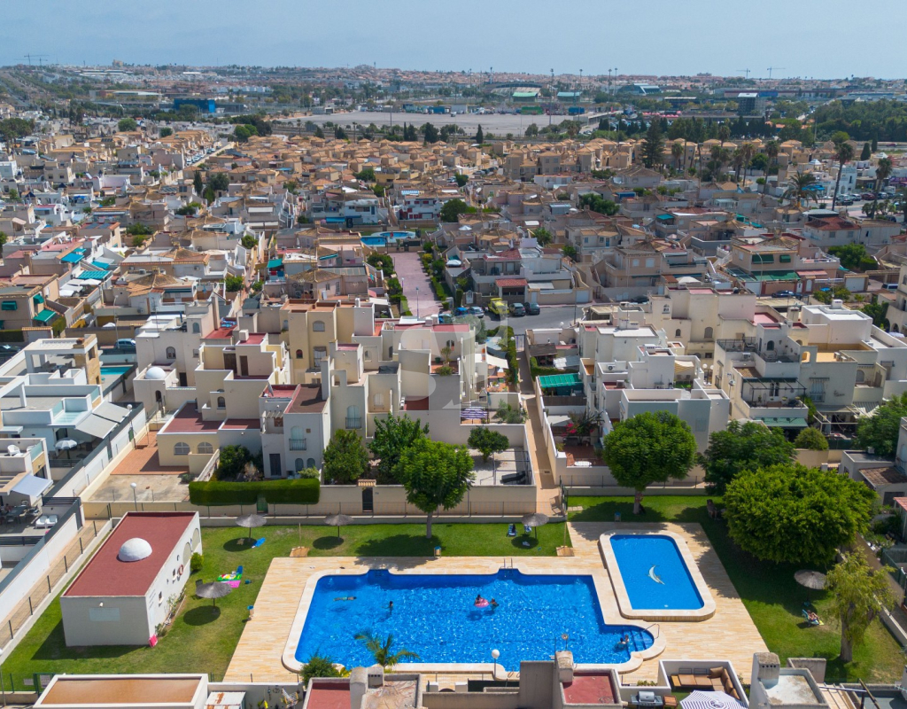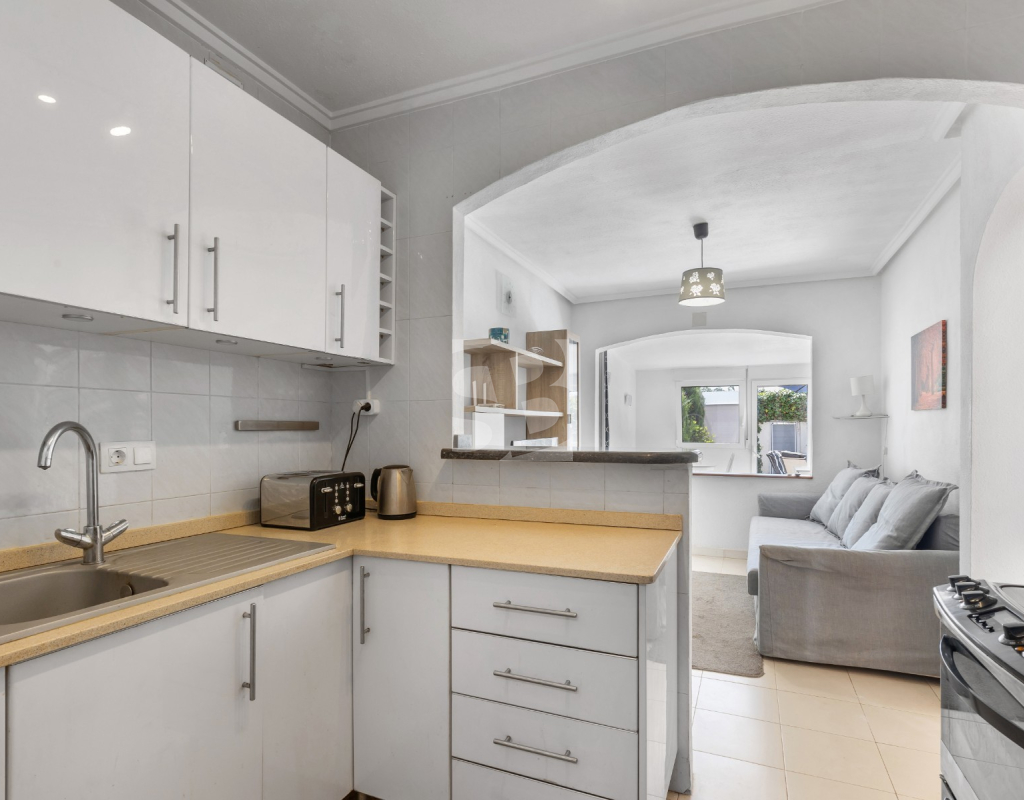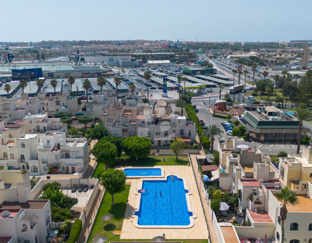 В доме 2 спальни, 1 ванная комната, кухня открытой планировки с подсобным помещением/туалетом и собственный сад с прямым выходом с улицы к супермаркету Carrefour и Habaneras. Дом расположен в прекрасном жилом комплексе с общим бассейном, зелеными зонами и теннисными кортами.