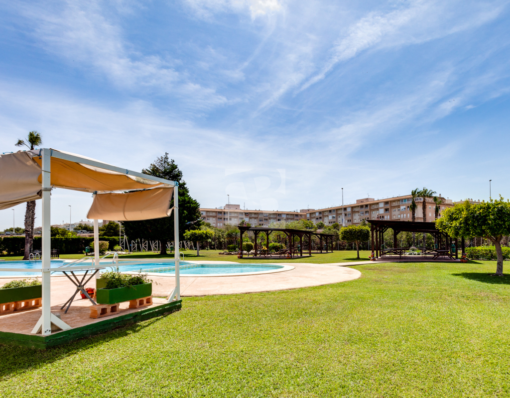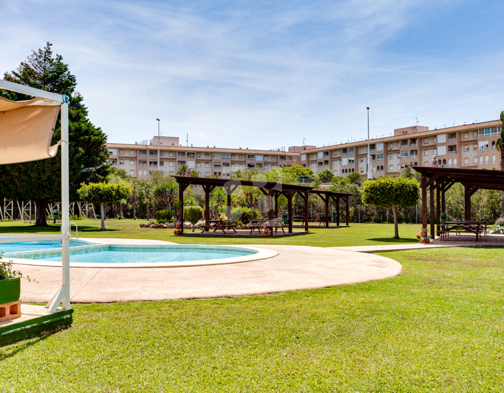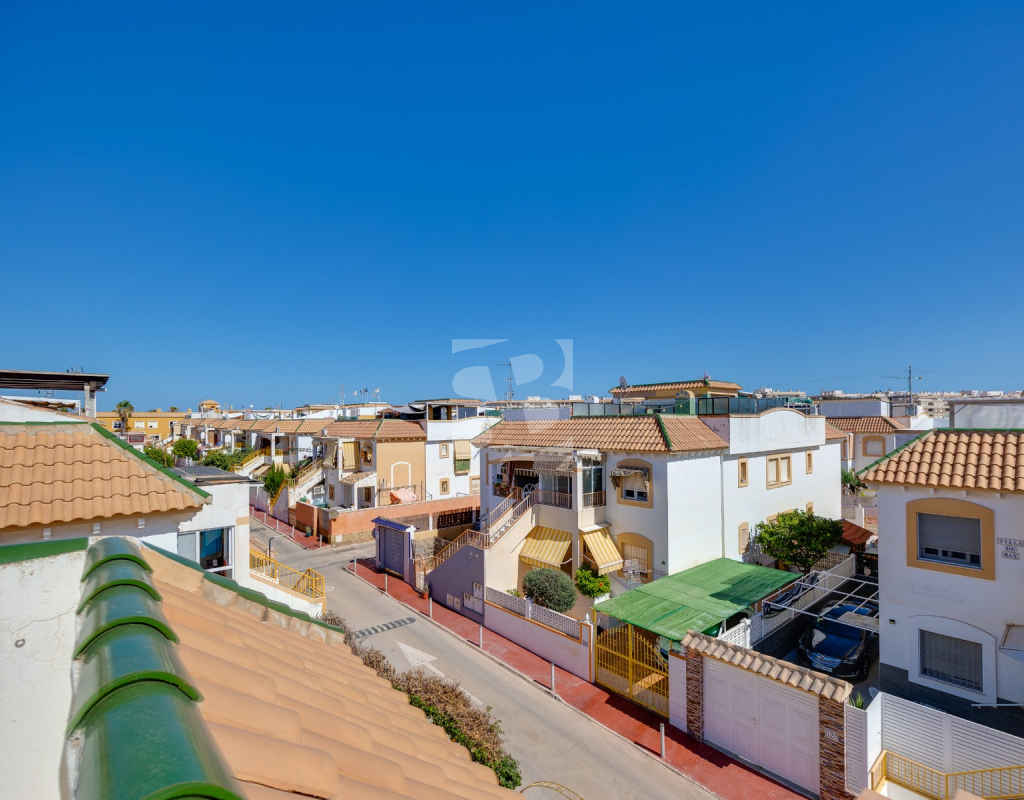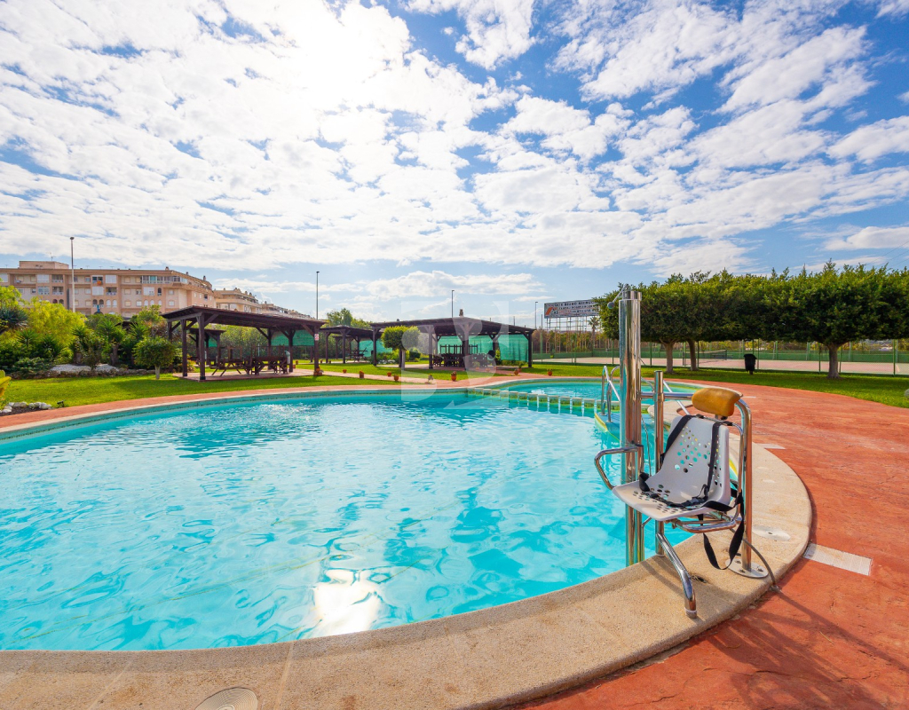 В доме есть кондиционер, обеспечивающий комфорт в любое время года. Он расположен в жилом комплексе с общим бассейном и большим солярием, идеально подходящим для отдыха и принятия солнечных ванн. Всего в 800 метрах от пляжа и в пешей доступности от C. COMERCIAL HABANERAS, это бунгало идеально подходит как для постоянного проживания, так и для отдыха на море.